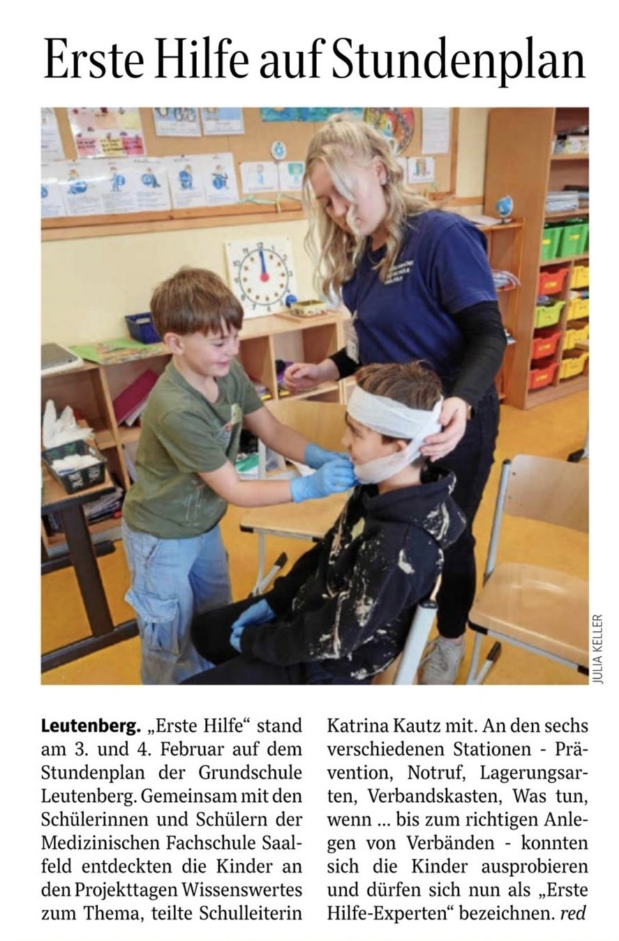 „Erste Hilfe Projekt“ an der Grundschule Leutenberg.